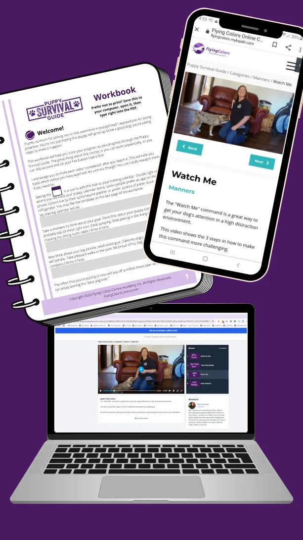 The Puppy Survival Guide was created by Clarice Kashuba, owner & head trainer of Flying Colors Canine Academy. She has helped families achieve their dog training goals since 2007.